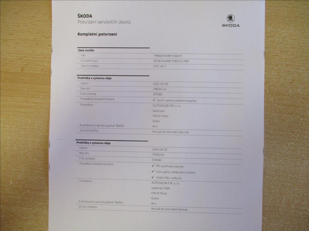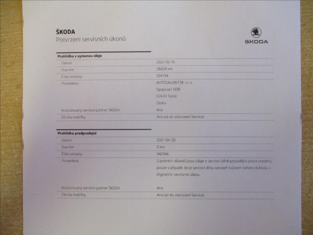 • Kompletní servisní historie v autorizovaném servisu